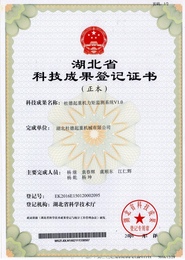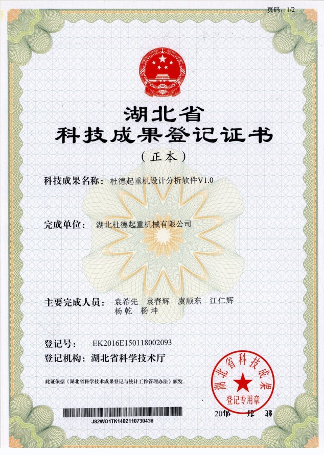 科技成果登記證書(shū)