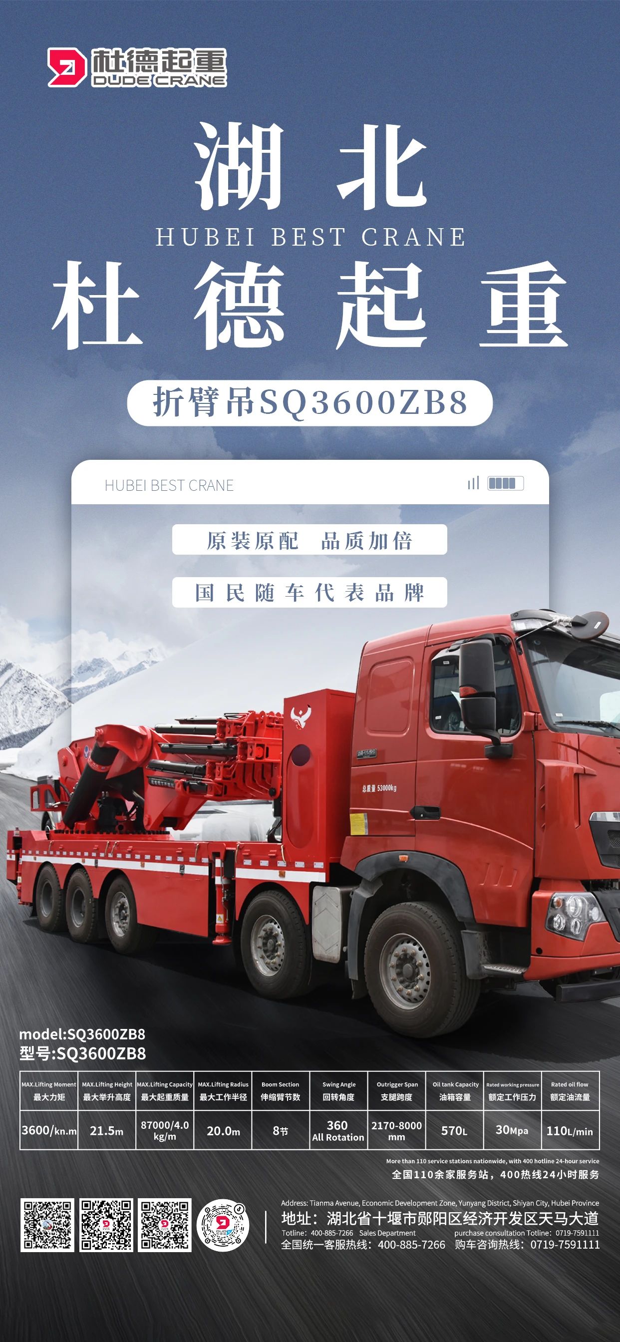 湖北杜德起重SQ3600ZB9 全地形吊裝專家!
